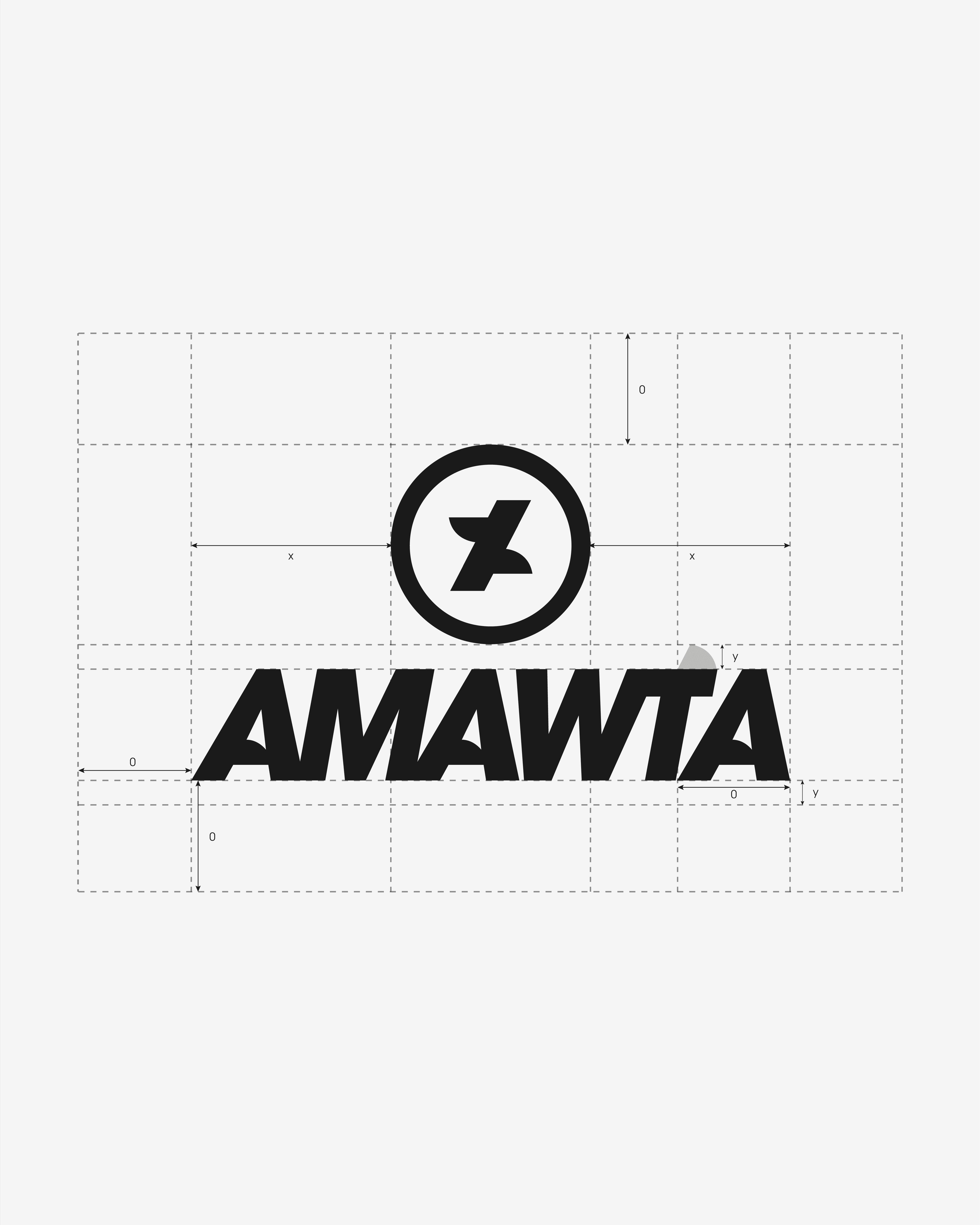 L'enjeu pour l'identité visuelle était donc de créer un équilibre parfait entre cette culture andine et la culture urbaine, dans un style minimaliste et sobre. Le logotype prend vie avec une police épaisse, sans-serif et en italique pour donner une image de force et de confiance. Pour apporter du dynamisme au logotype et faire un rappel à l'icône, j'ai ajouté un arrondi sur la traverse. Ainsi, en retirant le fût de gauche et la traverse de la lettre, puis en créant une symétrie, nous obtenons le symbole de l'identité visuelle d'AMAWTA. Ce symbole représente de façon abstraite à un condor, symbole très fort de la culture sud-américaine et péruvienne.
